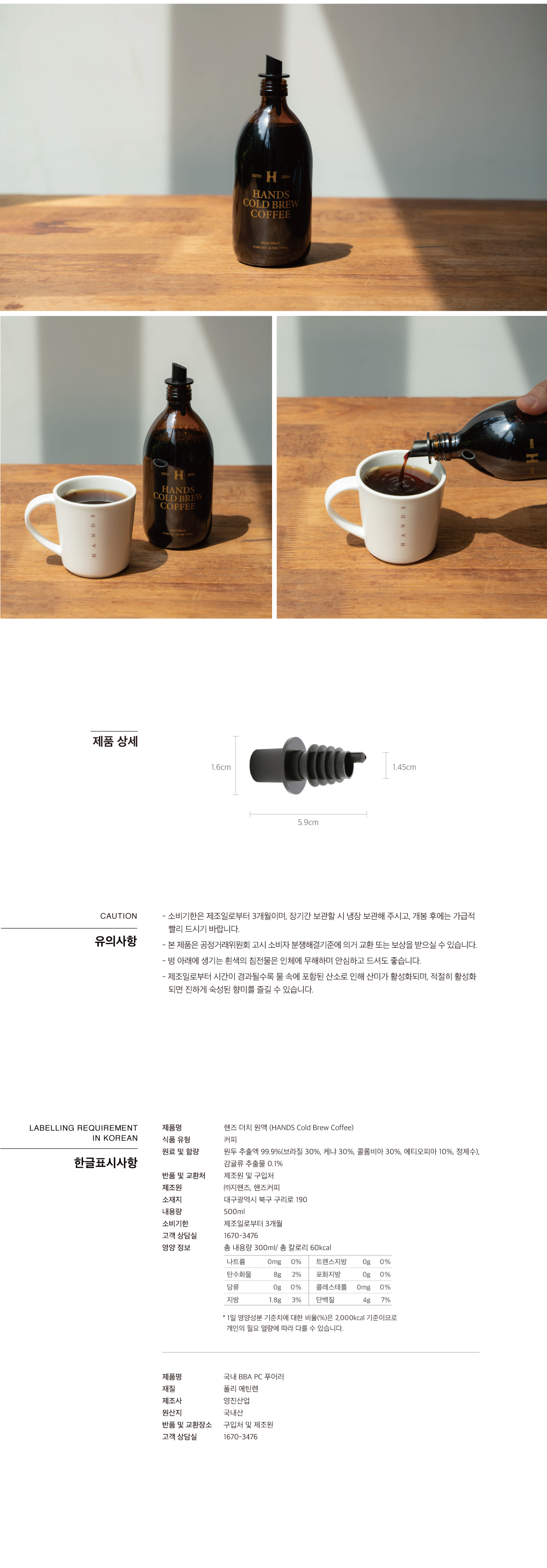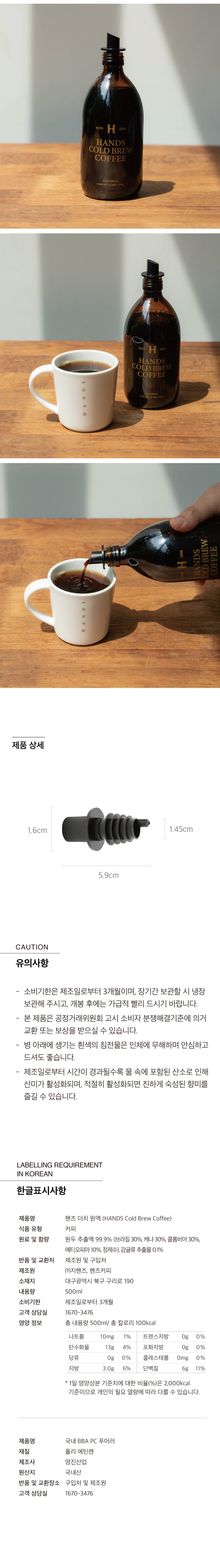 • 핸즈몰의 원두와 더치는 주문 접수 후, 즉시 로스팅하고 생산하여 타 소비자에게 재판매되기 어려우므로 발송 후에는 교환 및 반품이 불가합니다.
