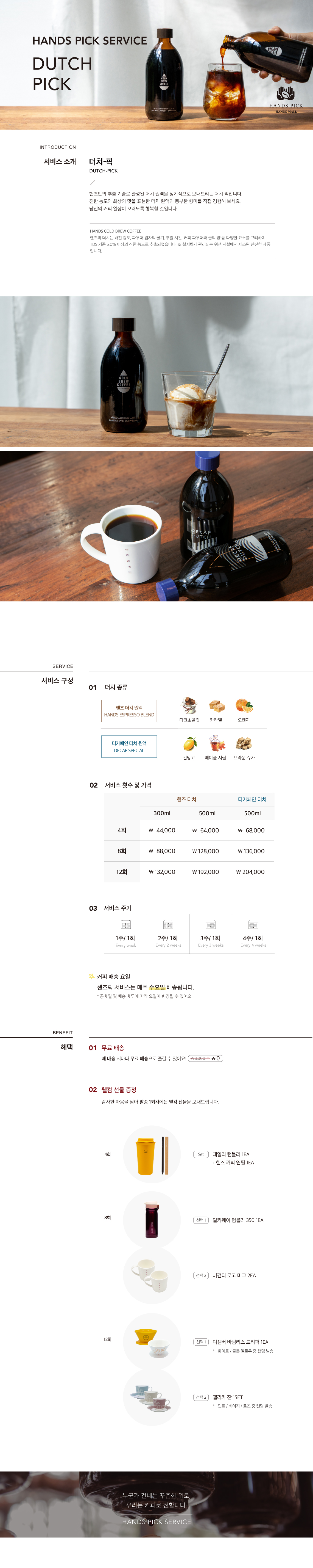 핸즈몰의 원두와 더치는 주문 접수 후, 즉시 로스팅하고 생산하여 타 소비자에게 재판매되기 어려우므로 발송 후에는 교환 및 반품이 불가합니다.