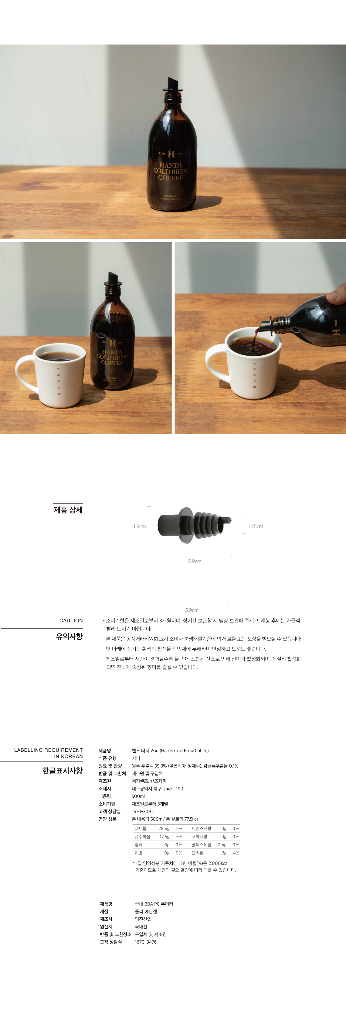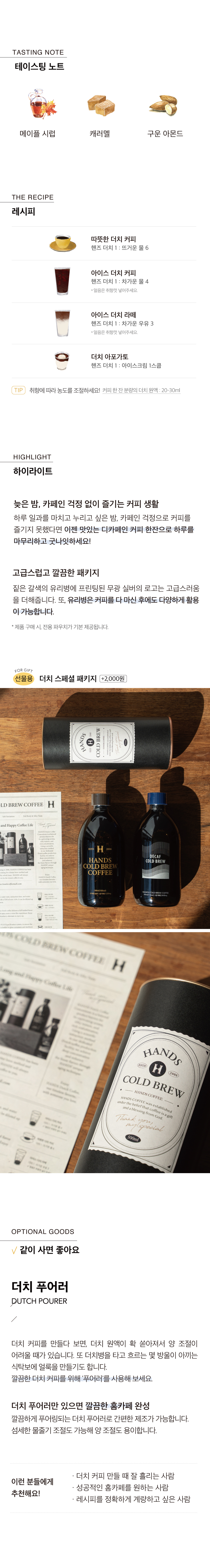 • 핸즈몰의 원두와 더치는 주문 접수 후, 즉시 로스팅하고 생산하여 타 소비자에게 재판매되기 어려우므로 발송 후에는 교환 및 반품이 불가합니다.