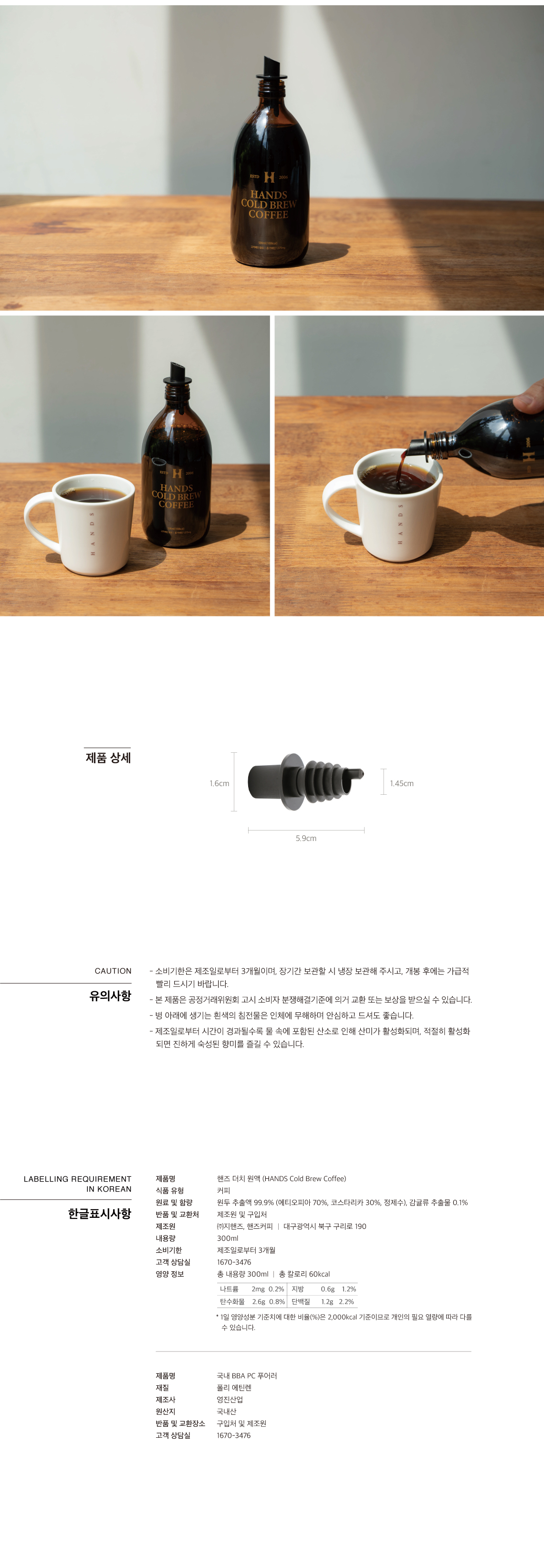 핸즈몰의 원두와 더치는 주문 접수 후, 즉시 로스팅하고 생산하여 타 소비자에게 재판매되기 어려우므로 발송 후에는 교환 및 반품이 불가합니다.
