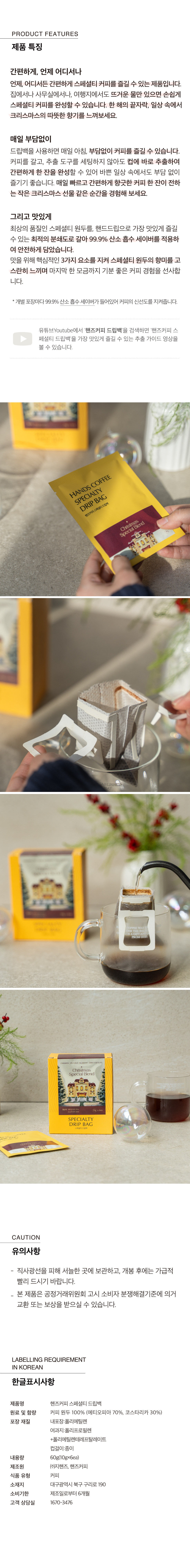 핸즈몰의 원두와 더치는 주문 접수 후, 즉시 로스팅하고 생산하여 타 소비자에게 재판매되기 어려우므로 발송 후에는 교환 및 반품이 불가합니다.